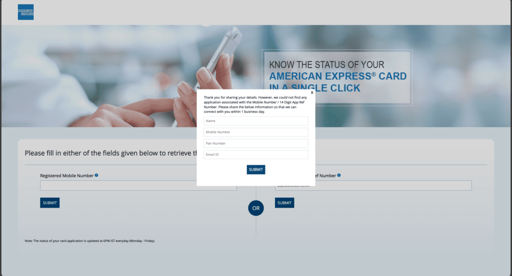 Visit the American Express Application Tracker page